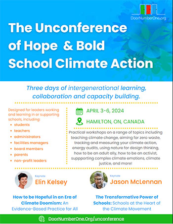 From Wednesday, April 3 through Saturday, April 6, 2024, students, employees and parents are invited to attend The Unconference of Hope & Bold School Climate Action taking place at the Hamilton Convention Centre and Hillfield Strathallan College. An unconference is a participant-centred event with a focus on interaction, experiential learning and collaboration. Co-hosted by Hillfield Strathallan College and Appleby College, this event will be an opportunity to meet others of all ages across Canada working on climate action in schools and learn practical, innovative new ways to solve school climate challenges. Please click here for more information. If you have any questions or are interested in attending, e-mail Nicola St George, director, sustainability and regeneration at nstgeorge@appleby.on.ca.